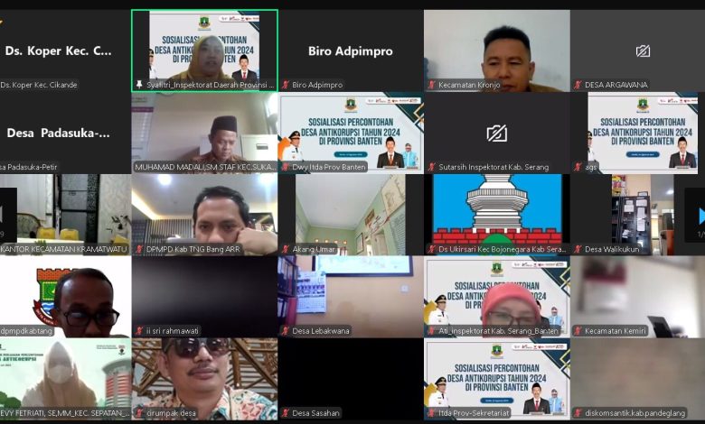 Serang (infonarasi.com) – Pemerintah Provinsi (Pemprov) Banten melalui Inspektorat Daerah Provinsi Banten melaksanakan Sosialisasi Percontohan Desa Antikorupsi Tahun 2024, Senin (12/8/2024). Sosialisasi secara virtual itu diikuti oleh ratusan kepala desa dan perangkat pemerintah desa.